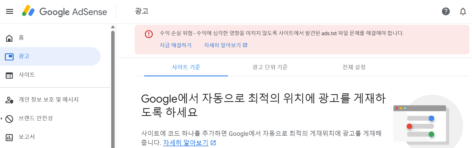 애드센스 자동광고 설정하기