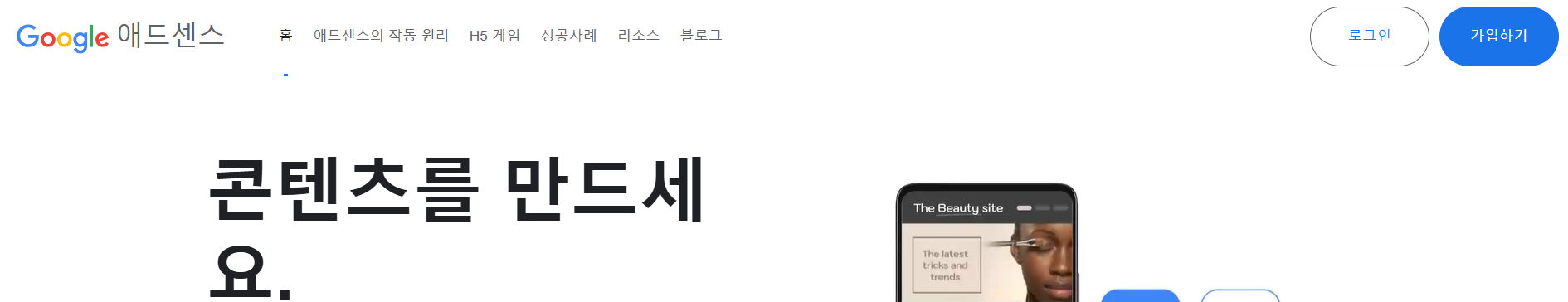 구글 창에서 애드센스 입력한 후 아래 웹사이트에서 클릭한다.